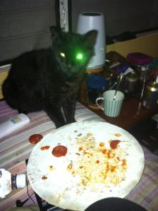 I don’t quite know how to say this, but I am *not* a cat person. In fact, I get great joy out of chasing a cat around while saying, “kitty kitty kitty kitty…” in a very annoying Elmira off of TinyTunes kind of way. I understand dogs, I get them. I can communicate with them and I understand pack mentality. Cats? not a clue. I’ve often had them; we just never clicked. Then I got a Phyllis. She came from the animal shelter and was delivered by a friend of mine who worked there at the time. They had spayed her and that caused her to be all shaved from the waist down. What no-one counted on was that when she was stressed out she dropped hair like a porcupine throws quills. So, before she ever came into my house the little black cat was, well, nekkid on the whole bottom of her body. From the top–fuzzy black kitten. From the bottom–OMG WHAT IS IT?!?! KILL IT WITH FIRE. She was a hideous package of ugly from her snaggle vampire-looking teeth to her nekkid underbelly.